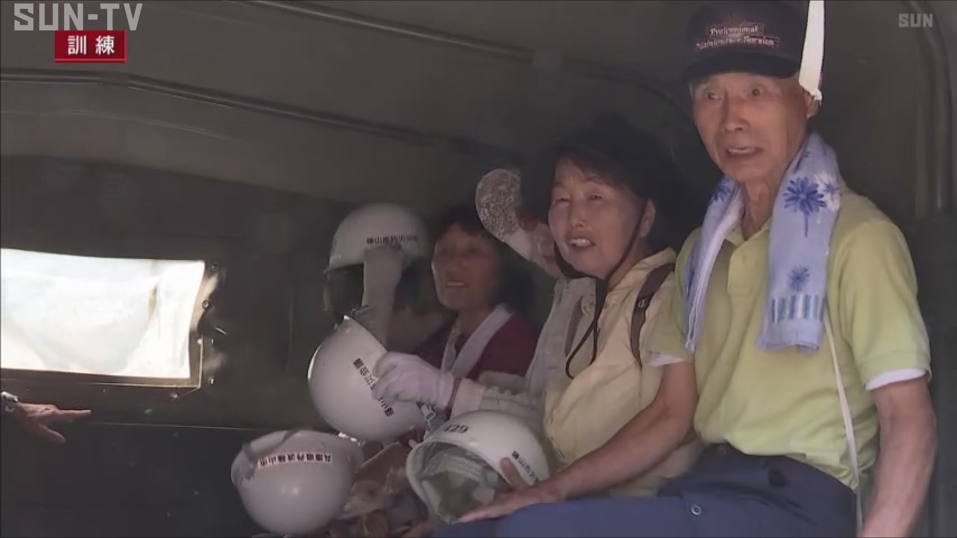 自衛隊が孤立集落の人たちを車に乗せるなど、各自で指定避難場所の中学校の体育館に移動し、災害時の避難経路を確認していました。