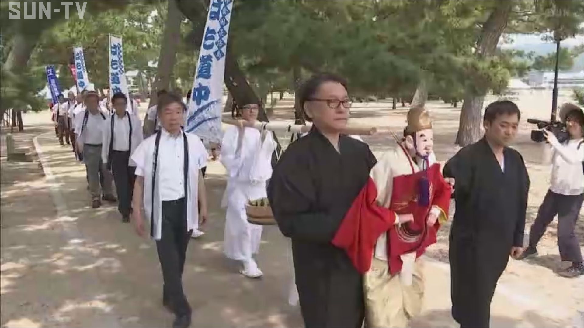 その後、一行はハモを先頭に、市内の海水浴場を訪れるなどしてにぎやかに練り歩きました。