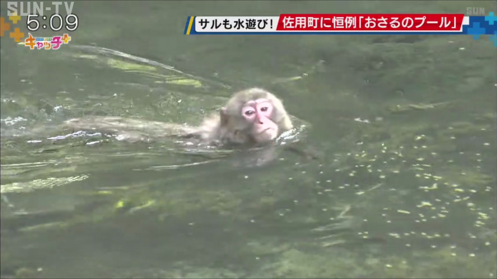 サルの水遊びは、気温次第で例年9月ごろまで見られるということです。