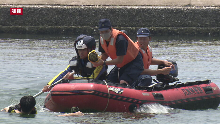 海水浴シーズンが本格化するのを前に兵庫県警は、海での水難事故を想定した救助訓練を行いました。