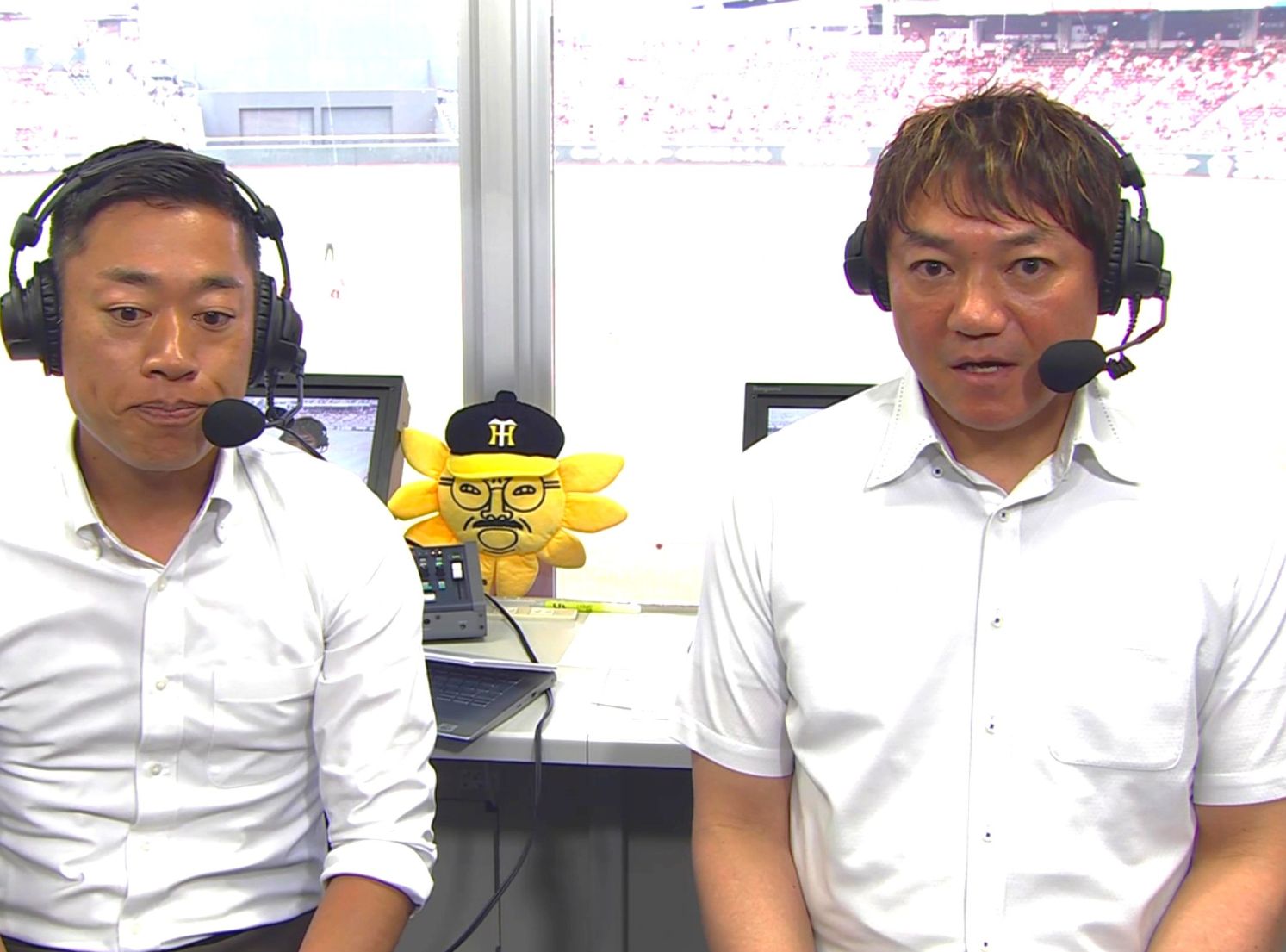 (左から)橋本航介アナ、濱中治氏 /マツダスタジアム