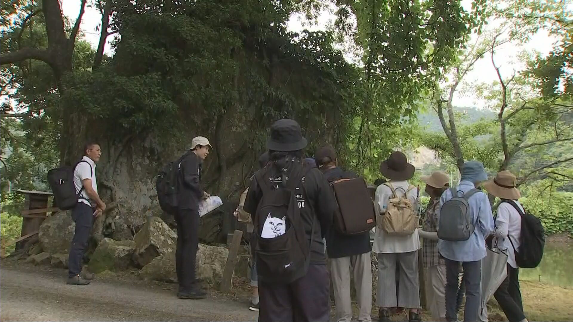 2025年5月、豊岡市で420人が亡くなったとされる北但大震災から100年となったことから、2回目となる今回は震災の記念碑がある田結(たい)地区の湿地を巡るコースに。