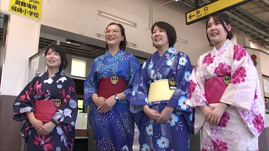 JR城崎温泉駅 駅員が浴衣で観光客をお出迎え 2025.07.1913:59 地域・まち 本格的な夏の訪れを前に、兵庫県豊岡市のJR城崎温泉駅では、7月19日から駅員が浴衣姿で観光客を出迎えています。 「ゆかたの似合うまち」が合言葉の城崎温泉。 その玄関口、JR城崎温泉駅では、観光客をもてなそうと、駅員らが毎年この時期、浴衣や法被を着て業務に当たっています。 19日は色とりどりの浴衣に身を包んだ駅員が、改札で観光客を出迎えた他、「みどりの窓口」では、法被を着た職員が対応に当たっていました。 城崎温泉駅での浴衣のお出迎えは、8月11日まで週末を中心に行われます。 #城崎温泉 #浴衣 記事のギャラリーを見る ニュース一覧へ戻る