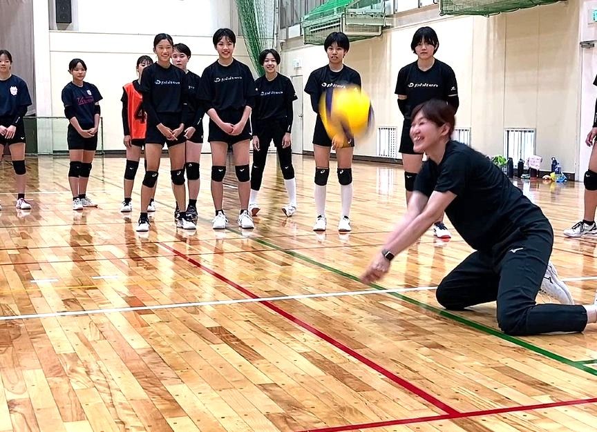 スパイクレシーブの練習では、井上監督が自ら“お手本”を示し、ユース15の選手たちはトップ選手の技術を目の当たりにした。