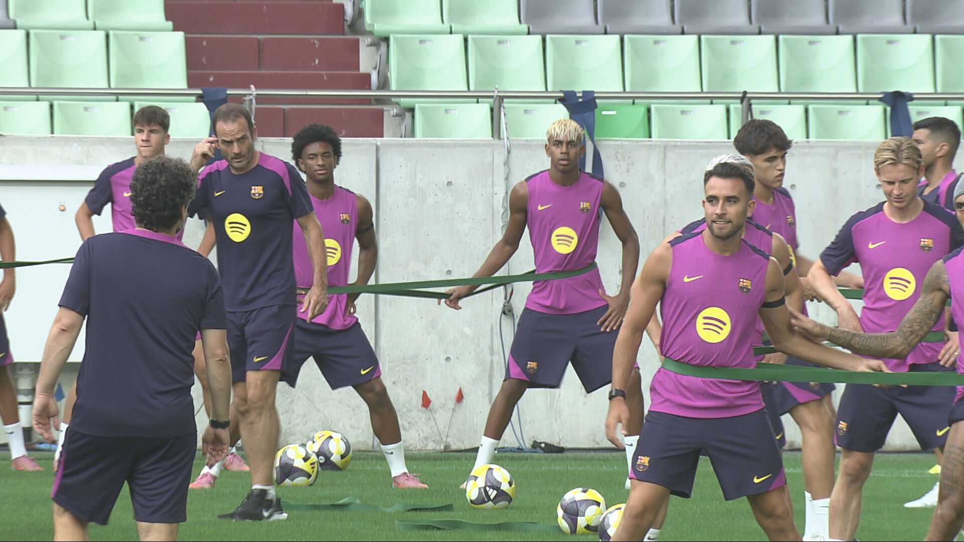 FCバルセロナの練習は報道陣に一部が公開され、10番を背負う、スペイン代表のラミン・ヤマル選手や、イングランド代表のマーカス・ラッシュフォード選手など、世界的なスター選手が体を動かしながらグラウンドの状態を確かめていました。