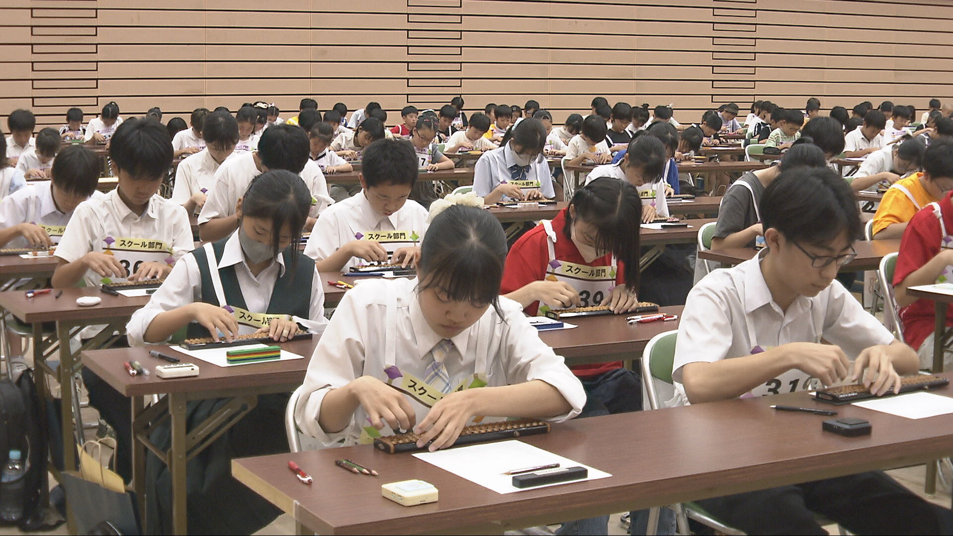 掛け算や割り算など6種目で競う総合競技をはじめ、スクリーンに映し出される数字をそろばんを使わずに計算するフラッシュ暗算の日本一決定戦なども行われました。