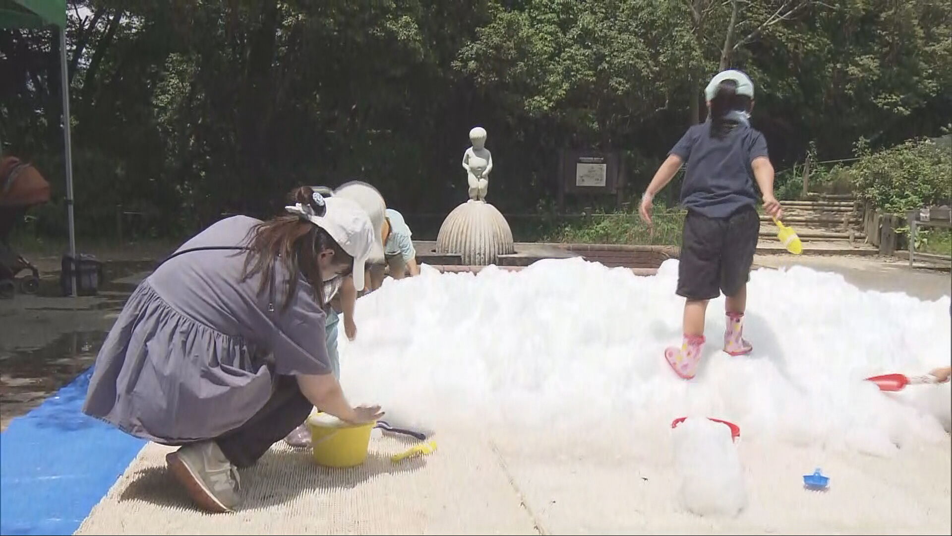 神戸市灘区の六甲山の山頂付近にある六甲高山植物園は避暑地として人気ですが、よりひんやりとした夏を過ごしてもらおうと「真夏の雪あそび」が開かれています。