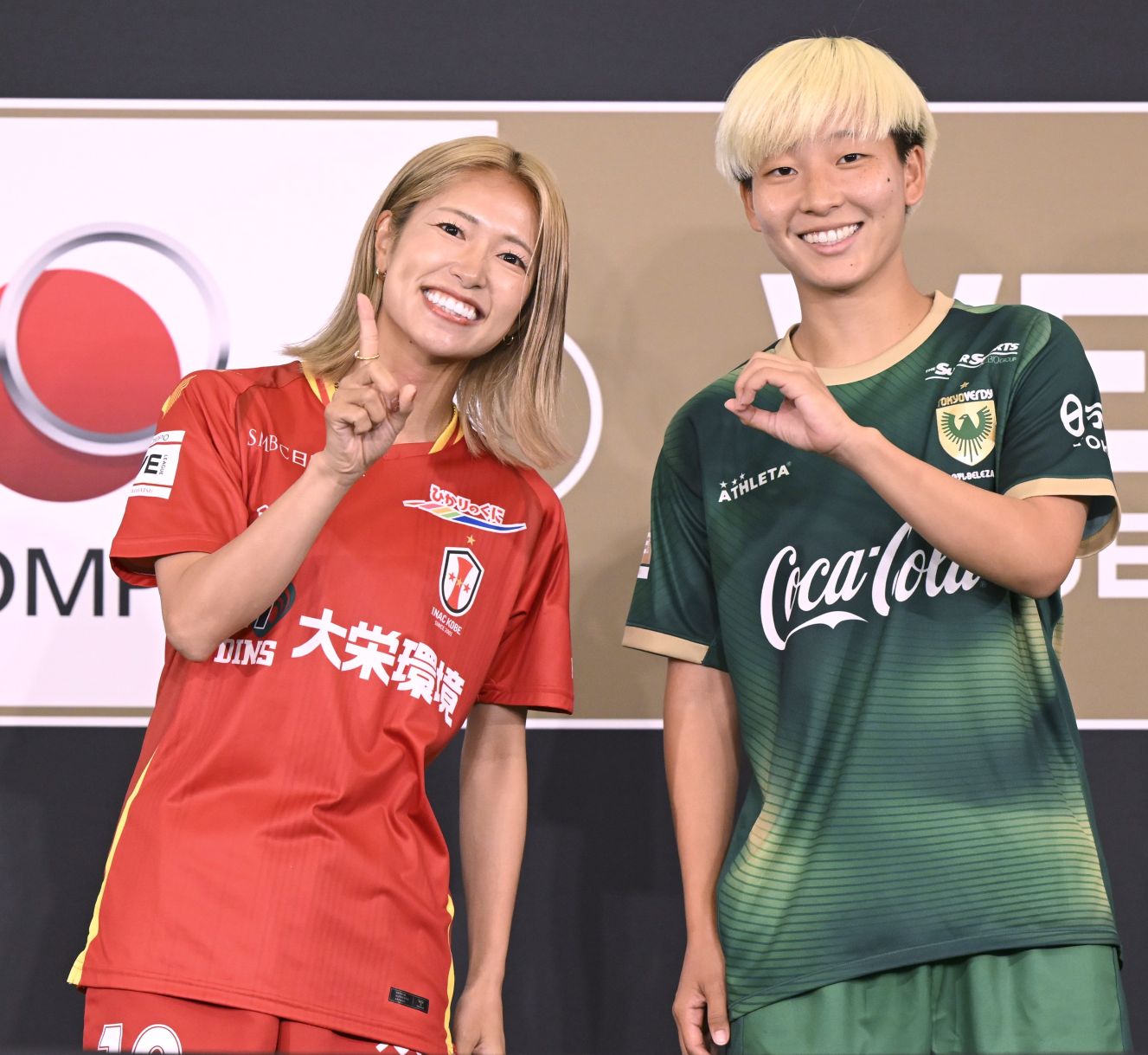 INAC神戸レオネッサからは、背番号10・MF成宮唯(なるみや・ゆい 30歳)が、開幕戦で対戦する日テレ・東京ベレーザの背番号10・MF菅野奏音(かんの・おと 24歳)と並んで登場し、意気込みを語った。