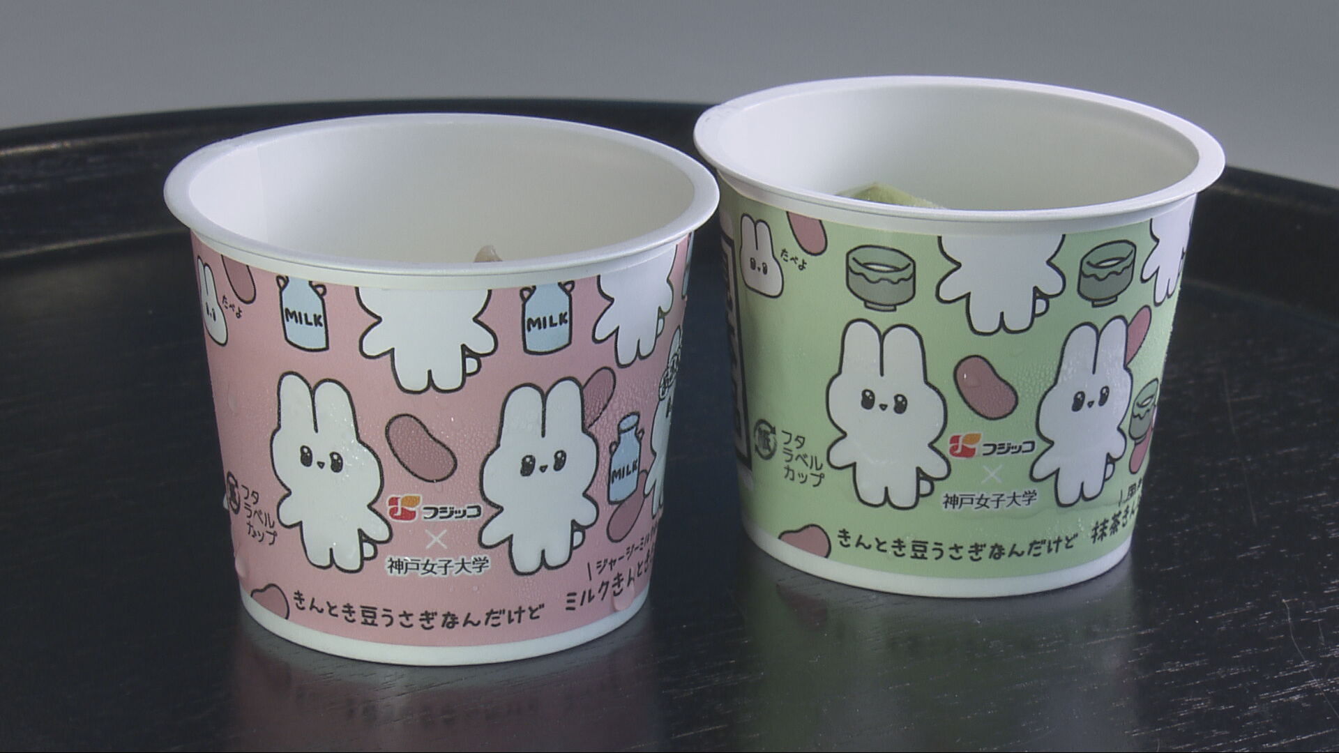 学生が出したアイデアの中から選ばれたのは、”カワイイ癒やし”をイメージしたうさぎがデザインされている「きんとき豆うさぎ・ミルクきんとき」と「きんとき豆うさぎ・抹茶きんとき」。