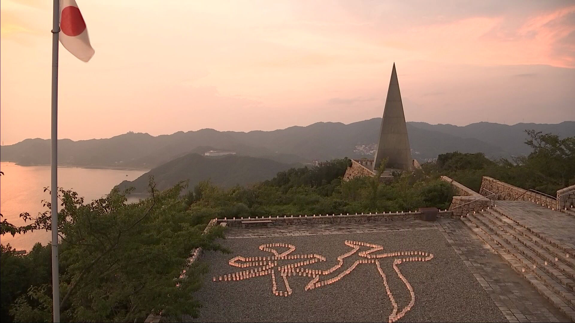 また、灯篭を灯す「萬灯会(まんどうえ)」が行われ、「祈」の文字を浮かび上がらせていました。