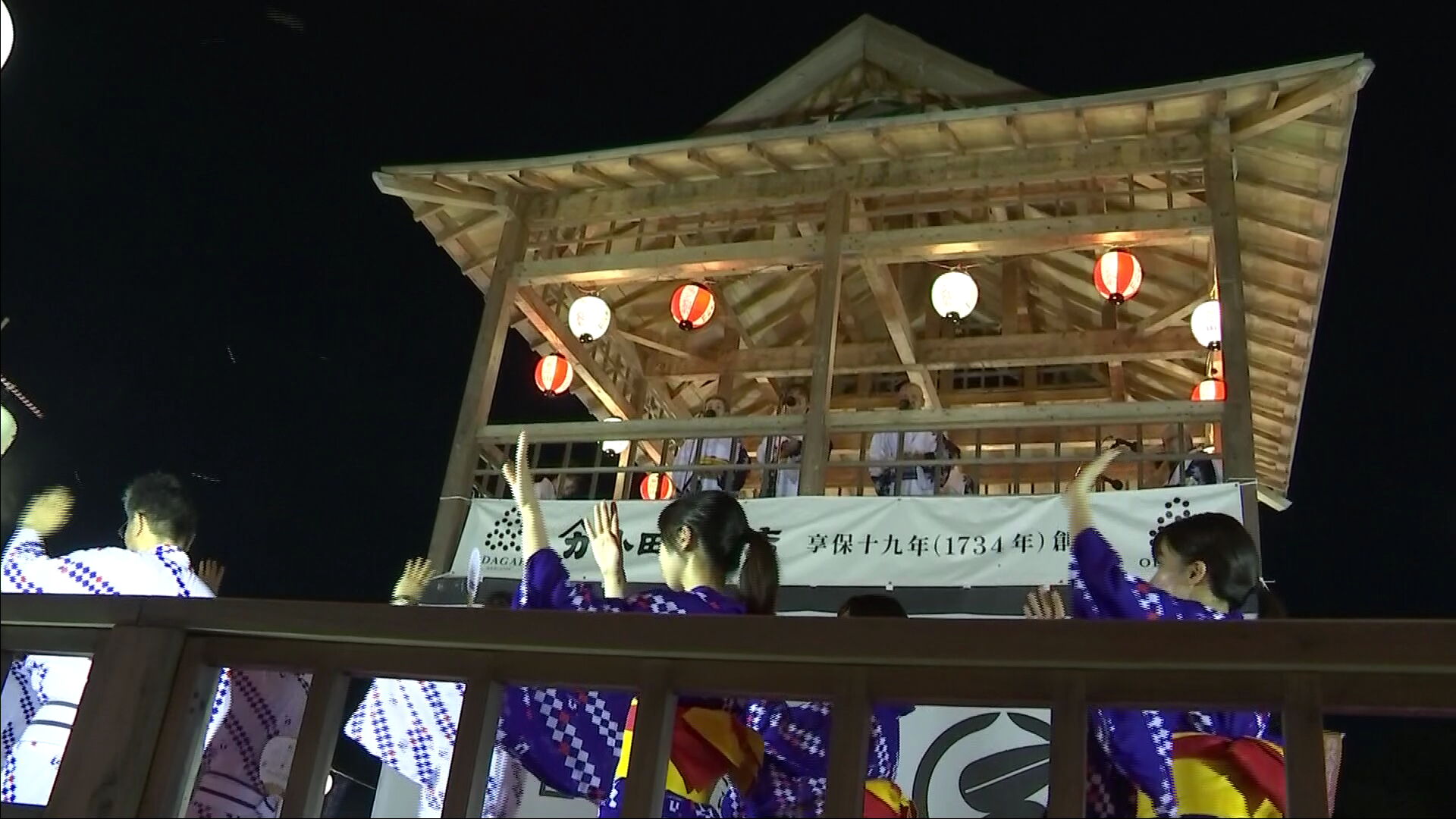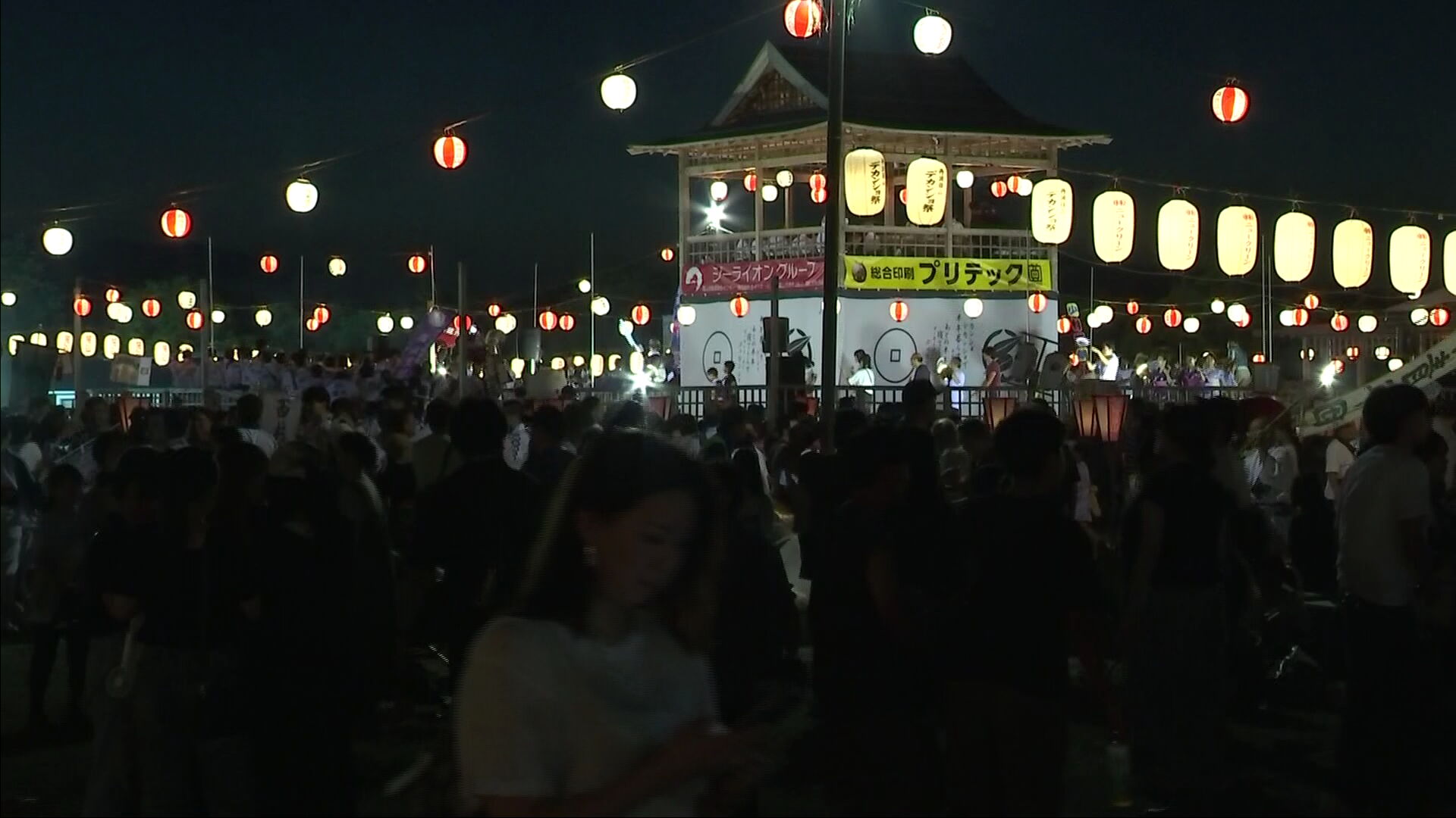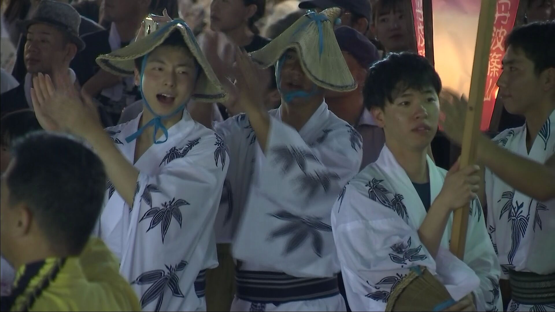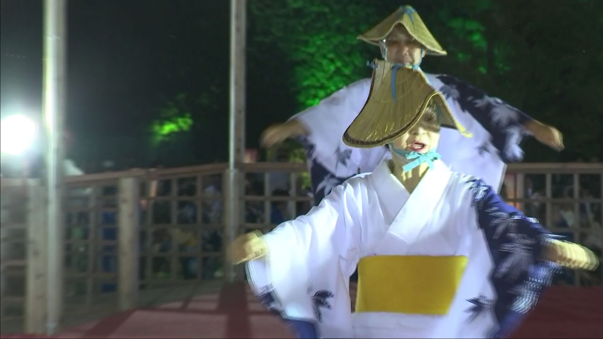 江戸時代から歌い継がれる民謡「デカンショ節」に合わせて浴衣に身を包んだ参加者、のべ100人以上が踊りの輪を重ねていました。