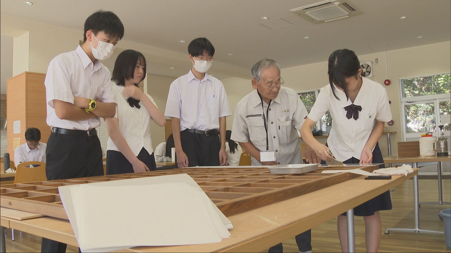 生徒たちはこれまでに書写山などで紙の原料となる植物ガンピやコウゾを採取し、8月に入ってからは紙すきを行うなどして準備を進めてきました。