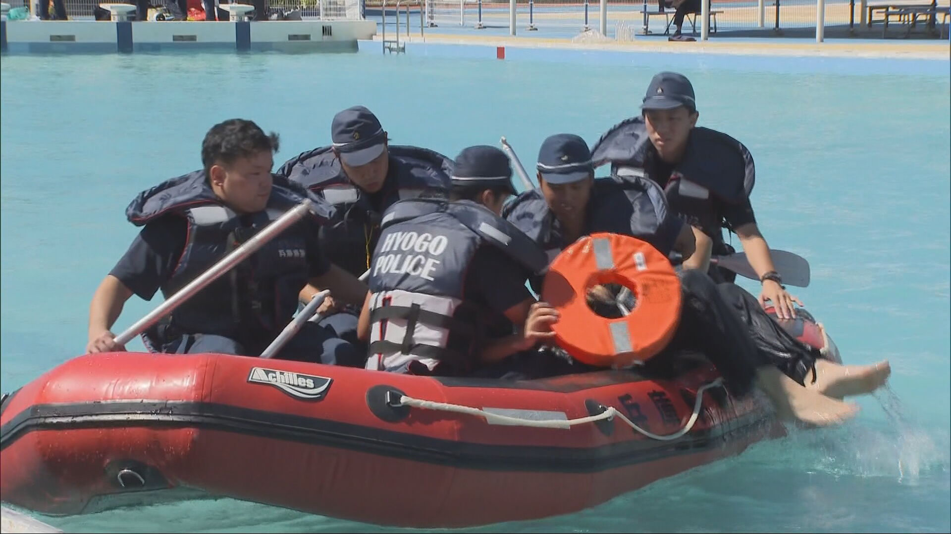 この訓練は川での水難事故や氾濫による水害などに備えようと実施したもので、高砂市で行われた2日の訓練には、高砂警察署など7つの警察署から警察官約40人が参加しました。