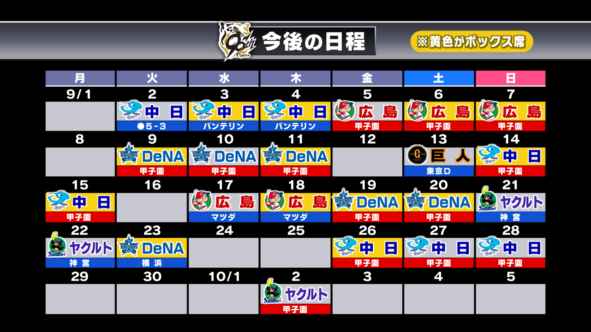 ■9月5日(金)~11日(木)は甲子園でのホームゲーム