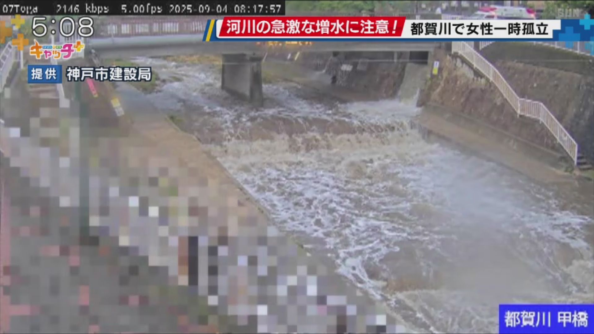9月4日午前8時ごろ、兵庫県神戸市灘区で、50代の女性が増水した川に取り残され、救助されました。