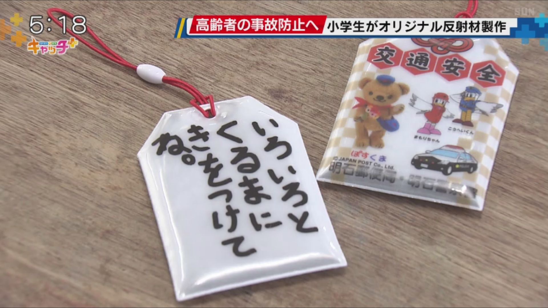 9月15日の敬老の日を前に、兵庫県明石市内の小学校で、高齢者の事故防止を呼び掛けようと、子どもたちが祖父母らにプレゼントするオリジナルの反射材を製作しました。