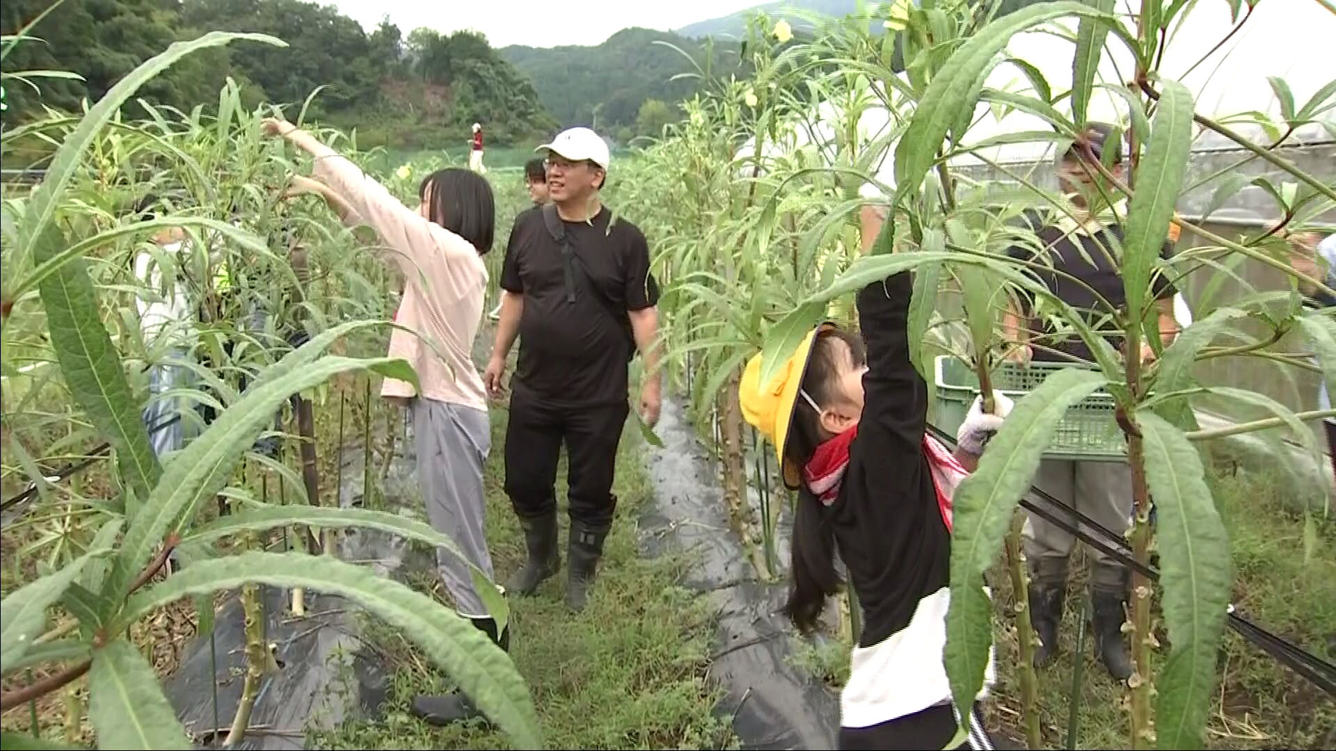 兵庫県豊岡市特産の「八代オクラ」の魅力を知ってもらおうと、10日、地元の小学生による収穫体験が行われました。