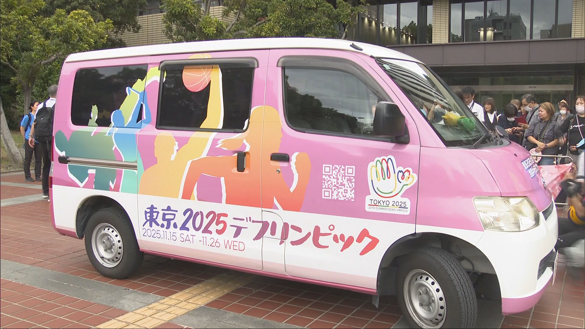 聴覚障害者のスポーツの国際大会「デフリンピック」が2025年11月に日本で初めて開かれるのを前に、大会をPRするキャラバンカーが姫路市役所を訪れました。