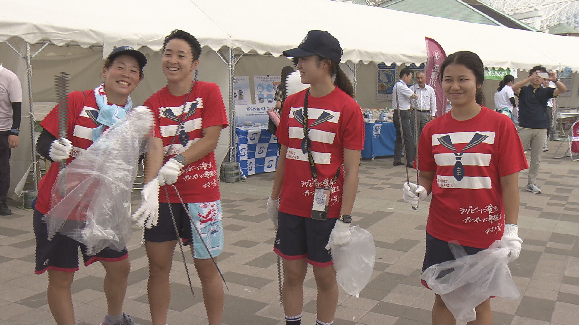 また、神戸の女子ラグビーチーム「神戸ファストジャイロ」の選手らとイベントに訪れた人たちがメリケンパーク全体の清掃活動を行い、落ち葉やたばこの吸い殻などを拾い集めました。