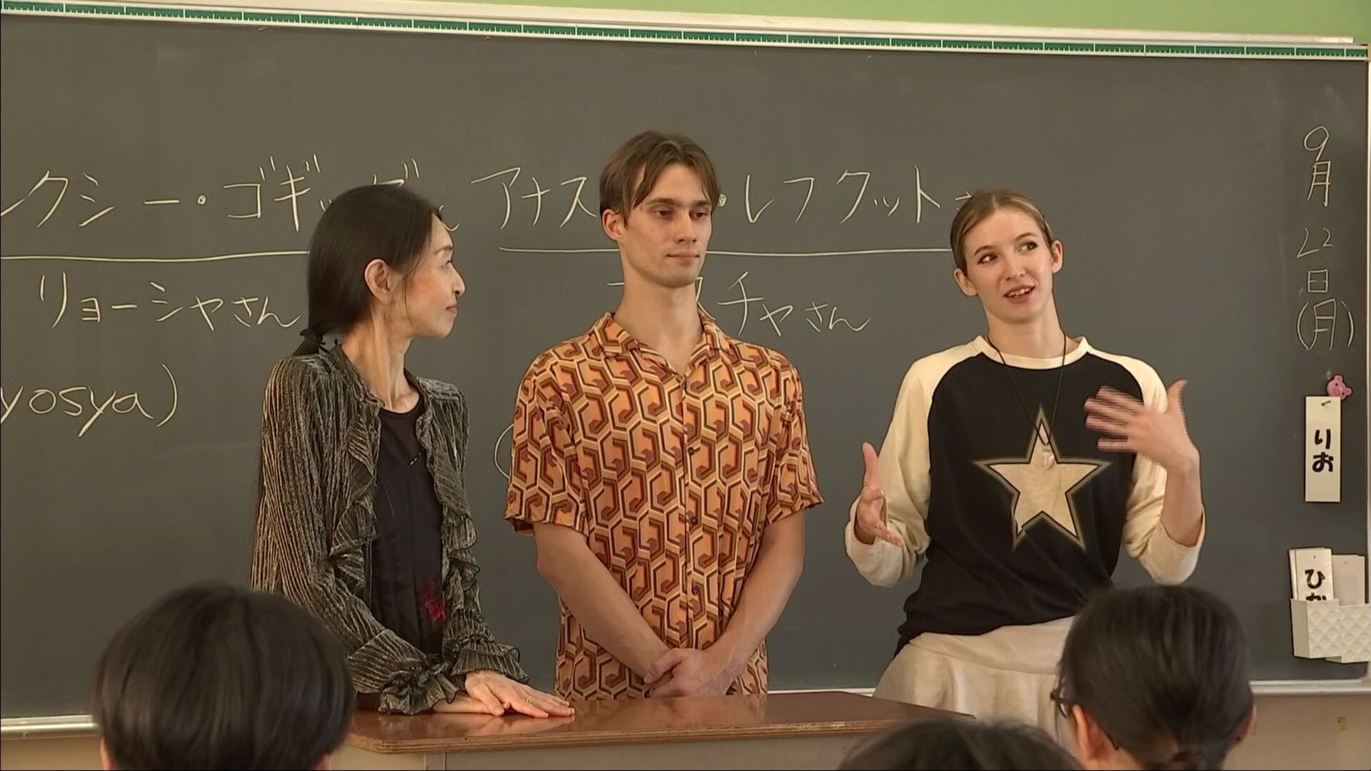 淡路市立石屋小学校で特別授業の講師を務めたのは、戦禍が続くウクライナから淡路市に避難しているオレクシー・ゴギッゼさんとアナスタシア・レフクットさん。