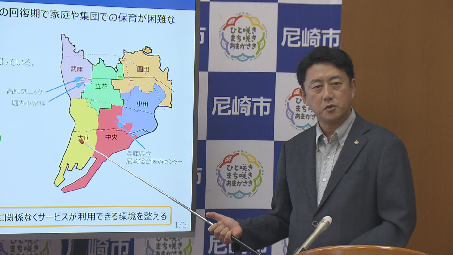尼崎市の松本市長は26日の会見で、子どもの急な発熱などの際、保育スタッフが家庭を訪問し看病を行うサービスを、10月1日から始めると発表しました。