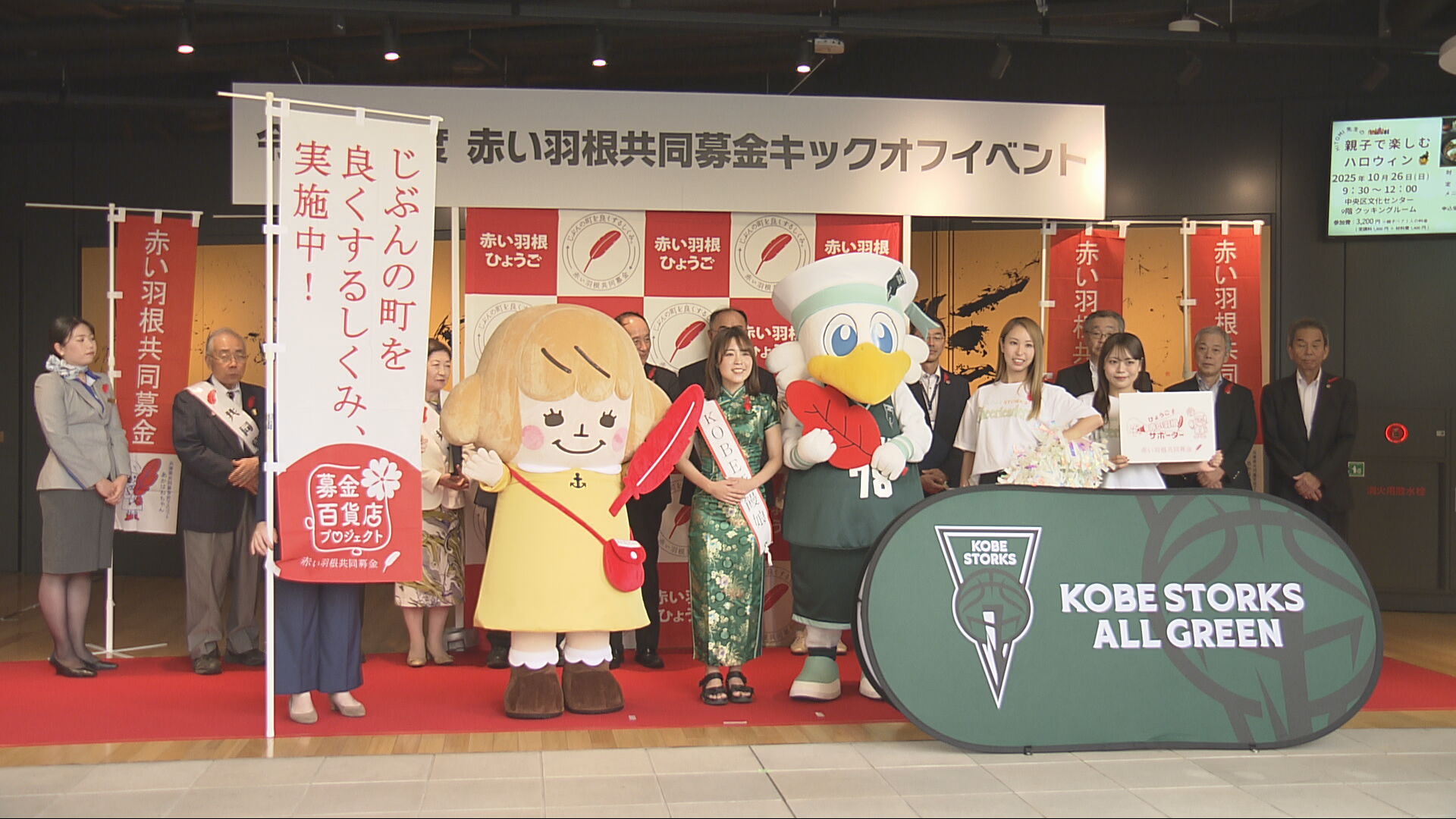 神戸市内で行われたイベントには、マスコットキャラクター「あかはねちゃん」や、神戸ストークスのマスコット「ストーキー」らが参加し、運動開始を宣言しました。