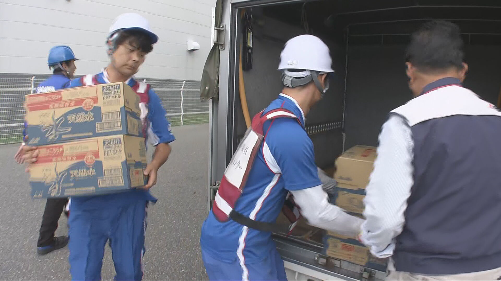 そして、届いた物資は、拠点に集められた後、再びトラックに積み込みまれ、避難所や一時保管倉庫などへと送り届けられました。