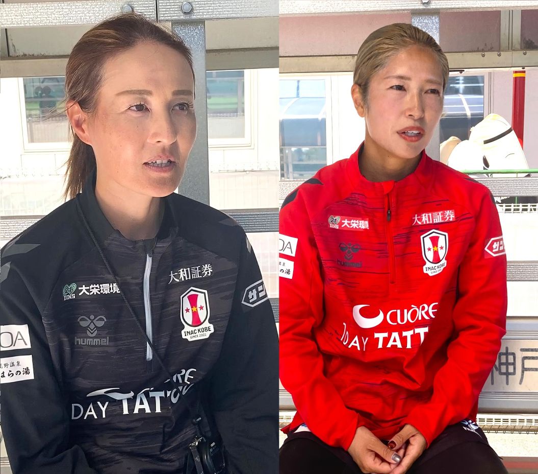 INAC神戸 (左)宮本ともみ監督、(右)10成宮 唯 /10月9日