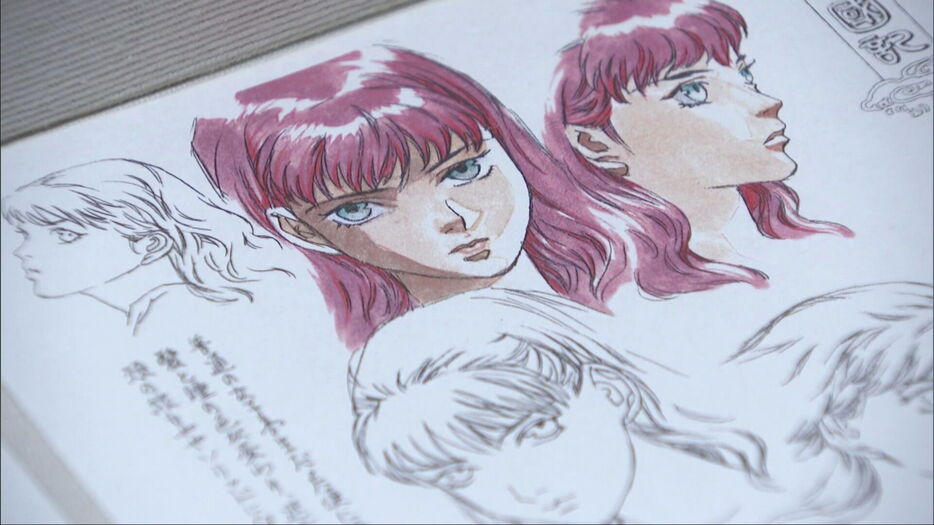 アニメの設定画やイベント用に描き下ろされた作品、ラフ画に加え、2025年12月に開幕するミュージカルの関連資料も展示されていて、訪れた人たちは作品の世界感に浸っていました。