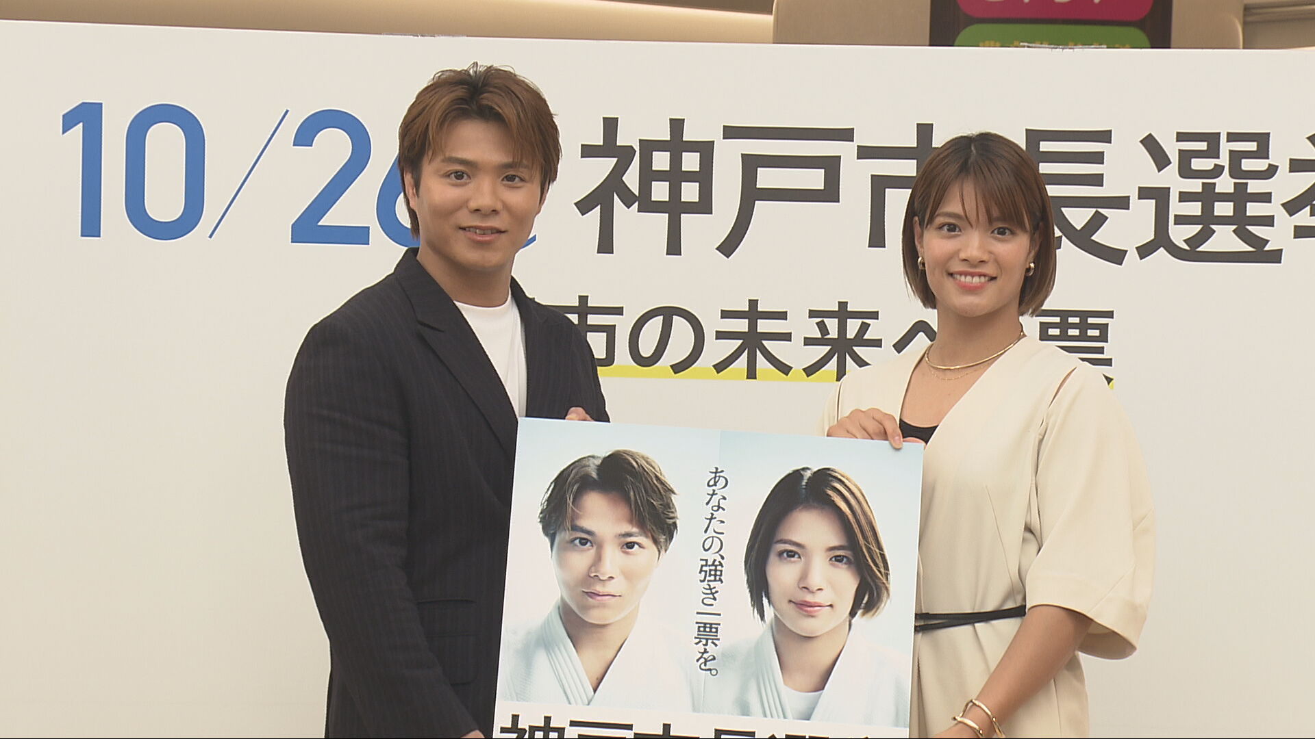 任期満了に伴う神戸市長選が10月26日に投開票されるのを前に、神戸市出身の柔道家で、オリンピック金メダリストの阿部一二三選手と詩選手がイベントに出席し、投票を呼び掛けました。
