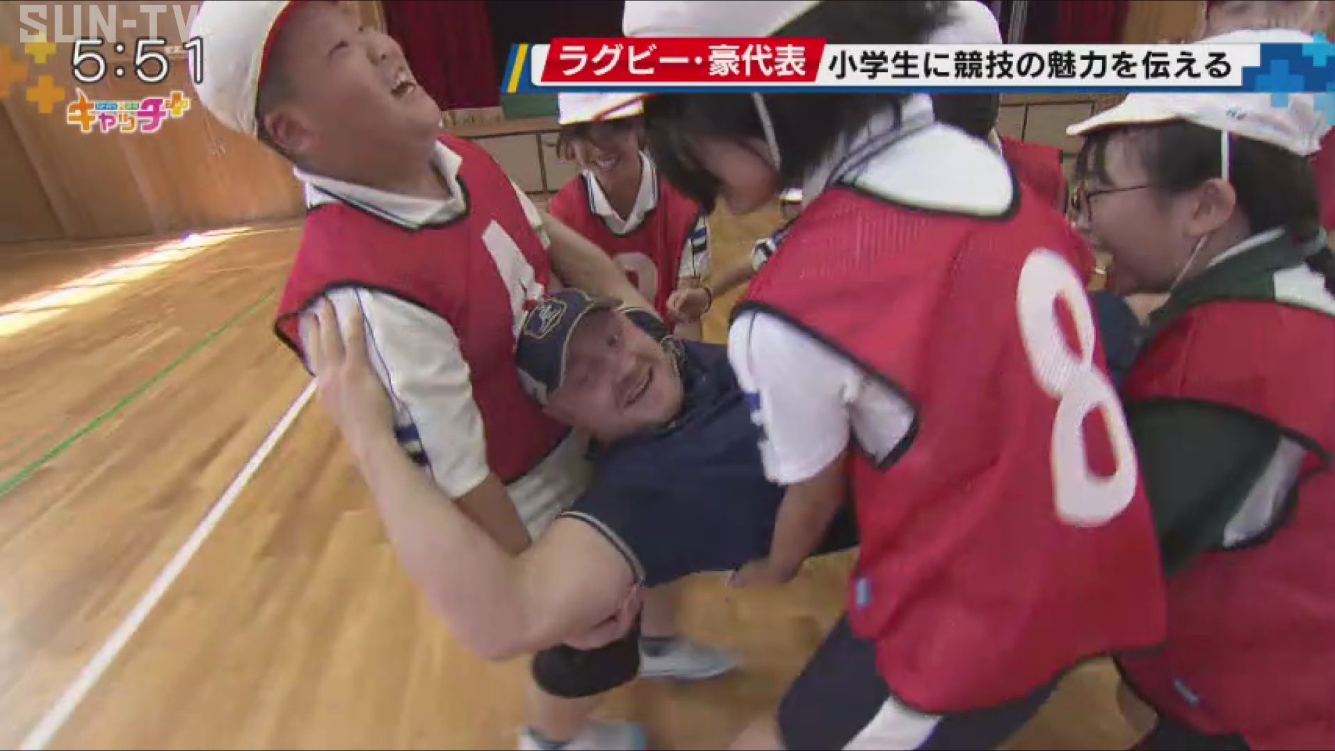 10月18日に行われるラグビー日本代表戦を前に、対戦相手のオーストラリア代表の選手が神戸市内の小学校を訪問し、児童たちと交流しながら、ラグビーの魅力を伝えました。