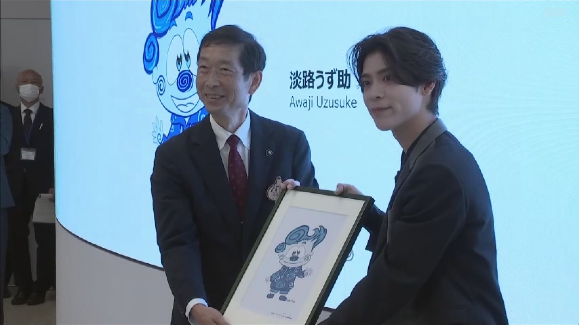 南あわじ市の「道の駅うずしお」では10月19日のリニューアルオープンを前にアイドルグループ「timelesz」のメンバー松島聡さんが考案した新しいキャラクターがきのう、お披露目されました。