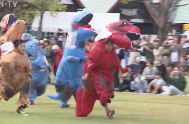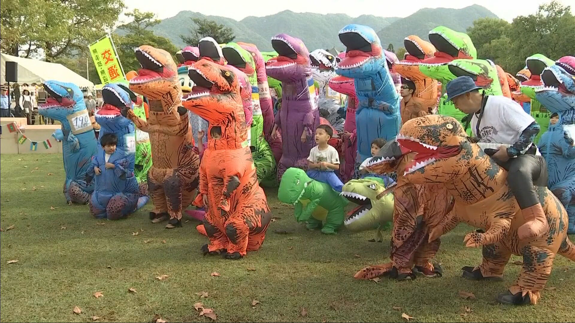 丹波竜の化石が発掘された兵庫県丹波市では、ティラノサウルスの着ぐるみを着て走るレースが開かれました。