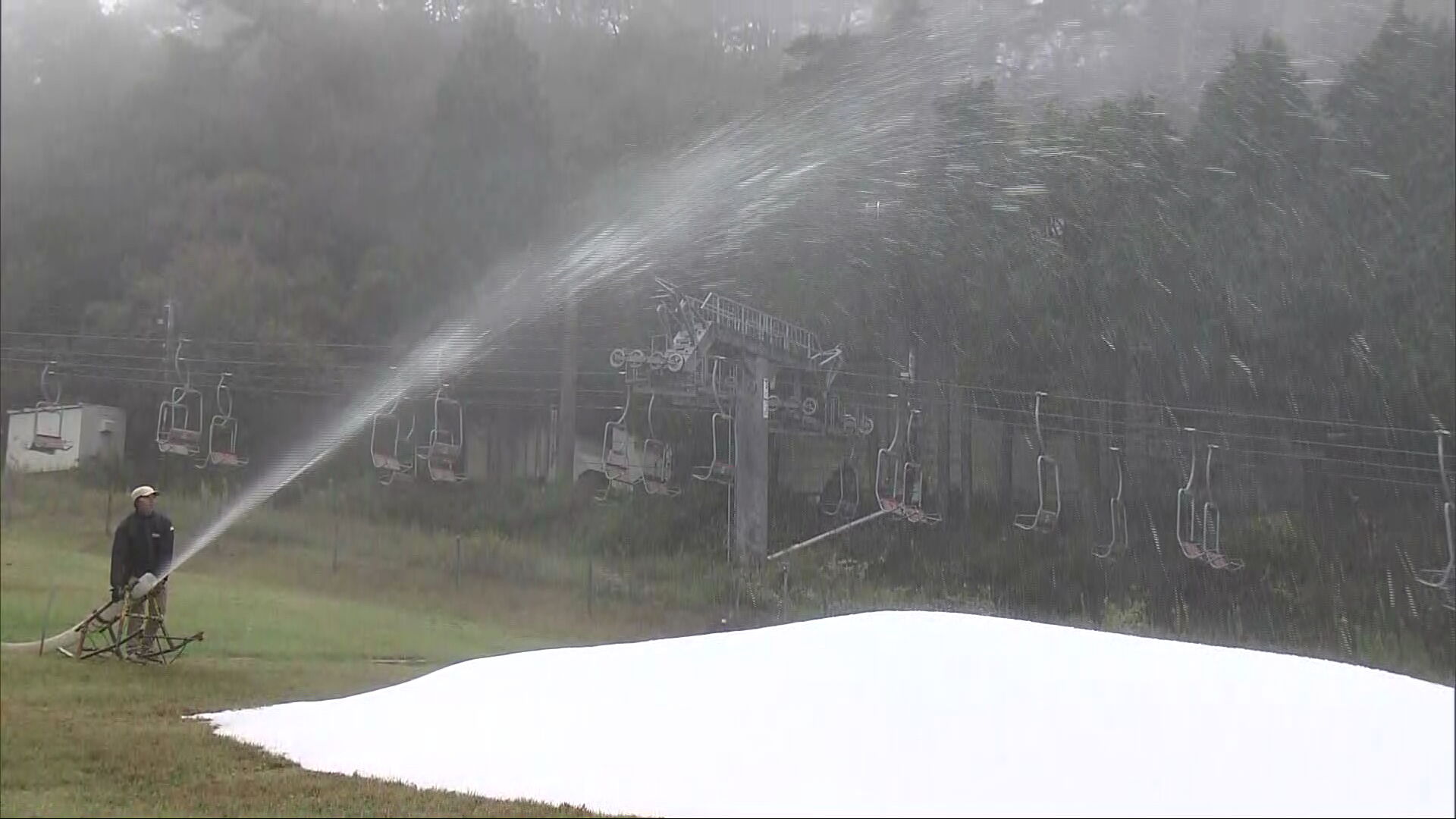 朝晩の気温が下がりようやく秋らしさが増す中、神戸市灘区の六甲山スノーパークでは、12月初旬のオープンに向けた雪づくりが始まりました。