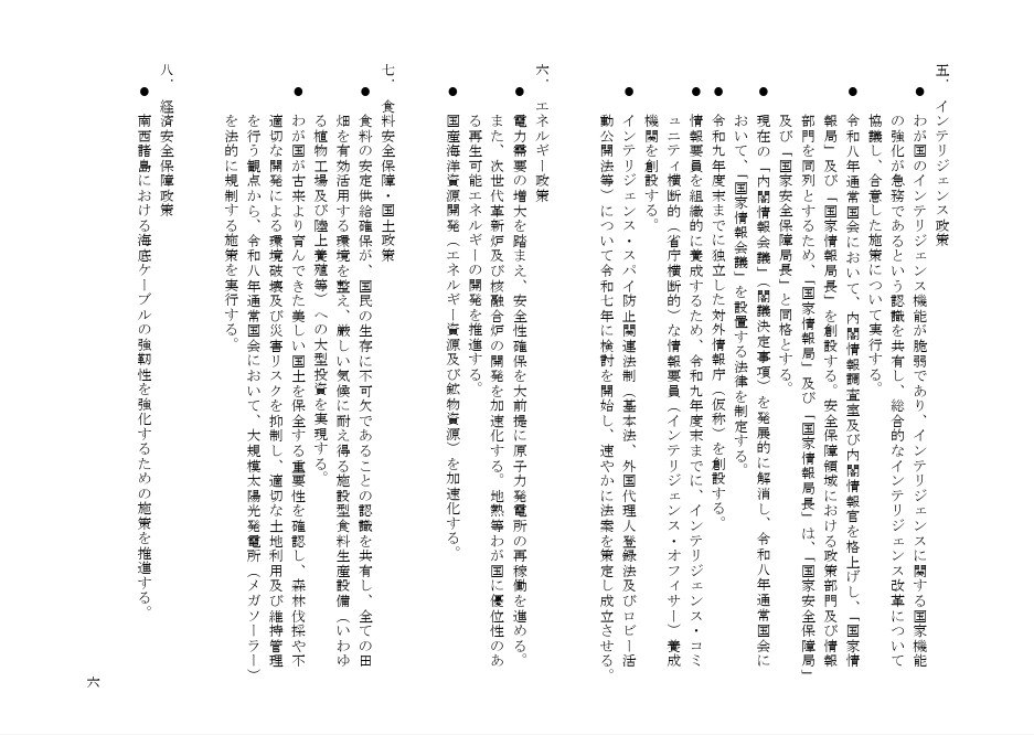 インテリジェンス政策・エネルギー政策 食料安全保障・国土政策 ・経済安全保障政策について