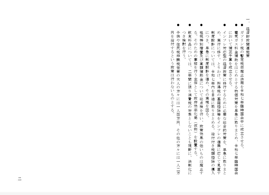合意書には、ガソリン税の暫定税率廃止法案の成立や2年間に限り、食料品は消費税の対象としないことも視野に法制化を検討すること。
