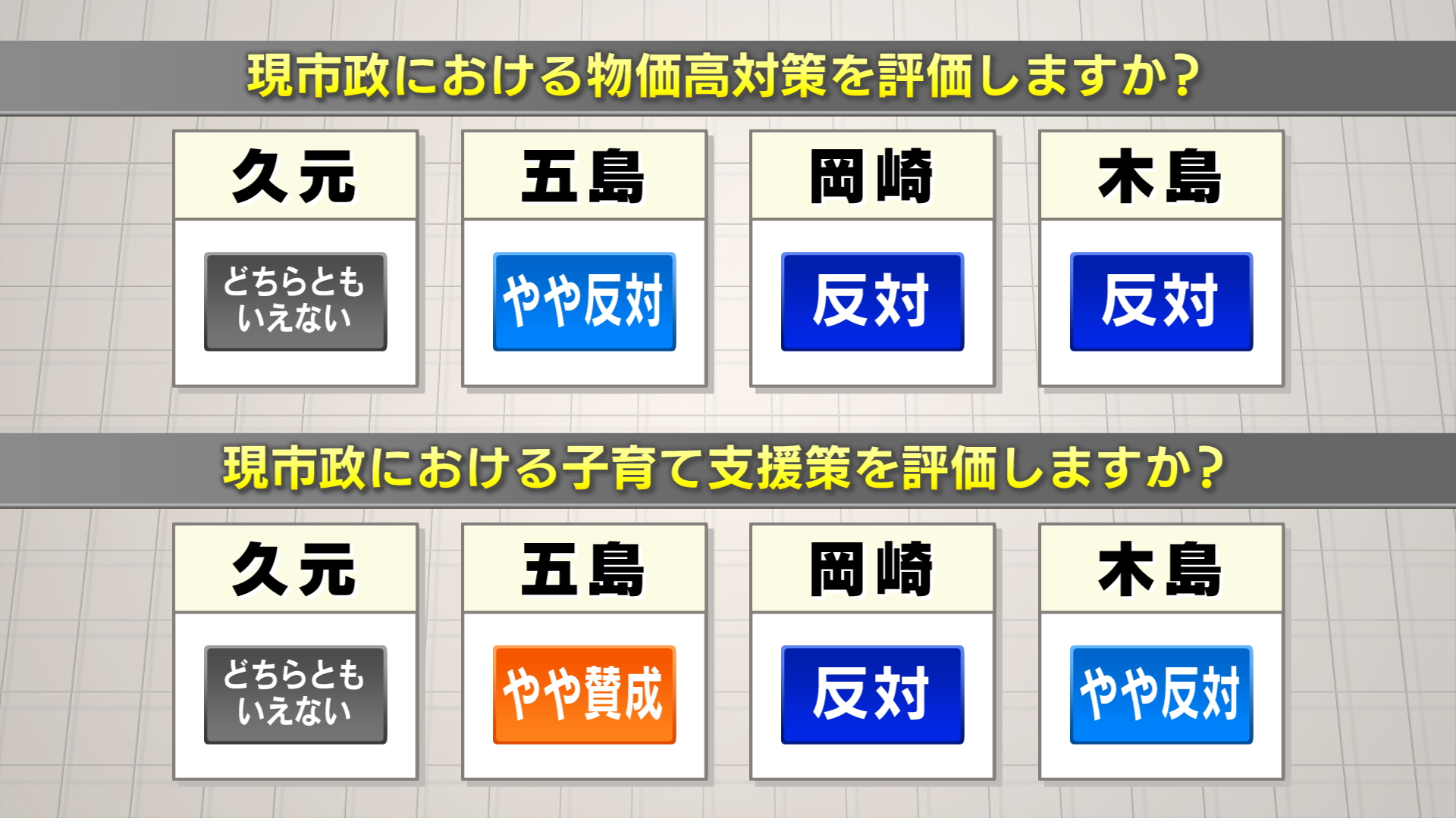 ⑤物価高対策 ⑥子育て支援策 各候補の考え