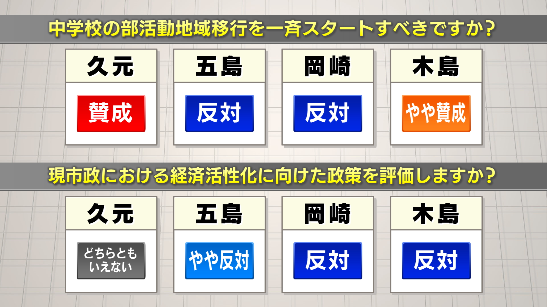 ⑦中学校の部活動地域移行 ⑧経済政策 各候補の考え