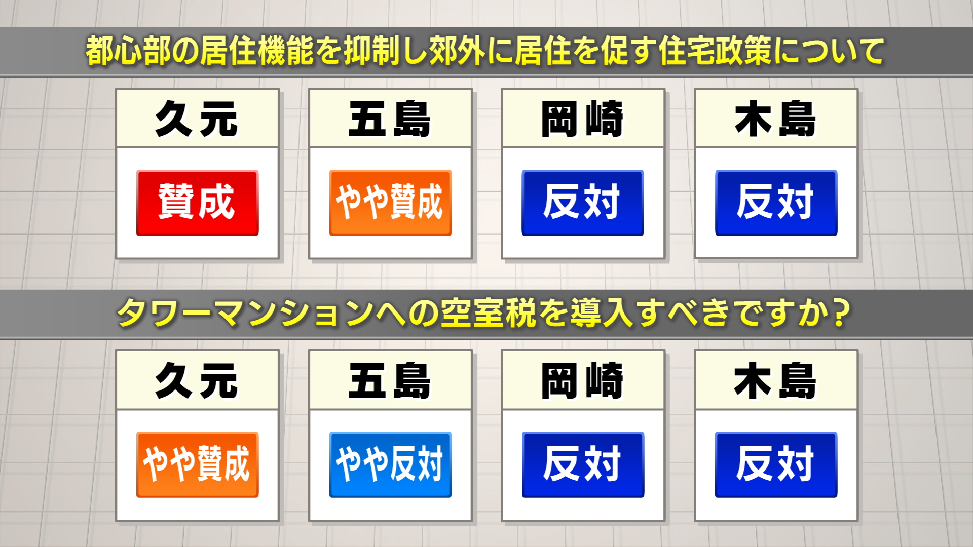 ③住宅政策 ④タワーマンション空室税 各候補の考え