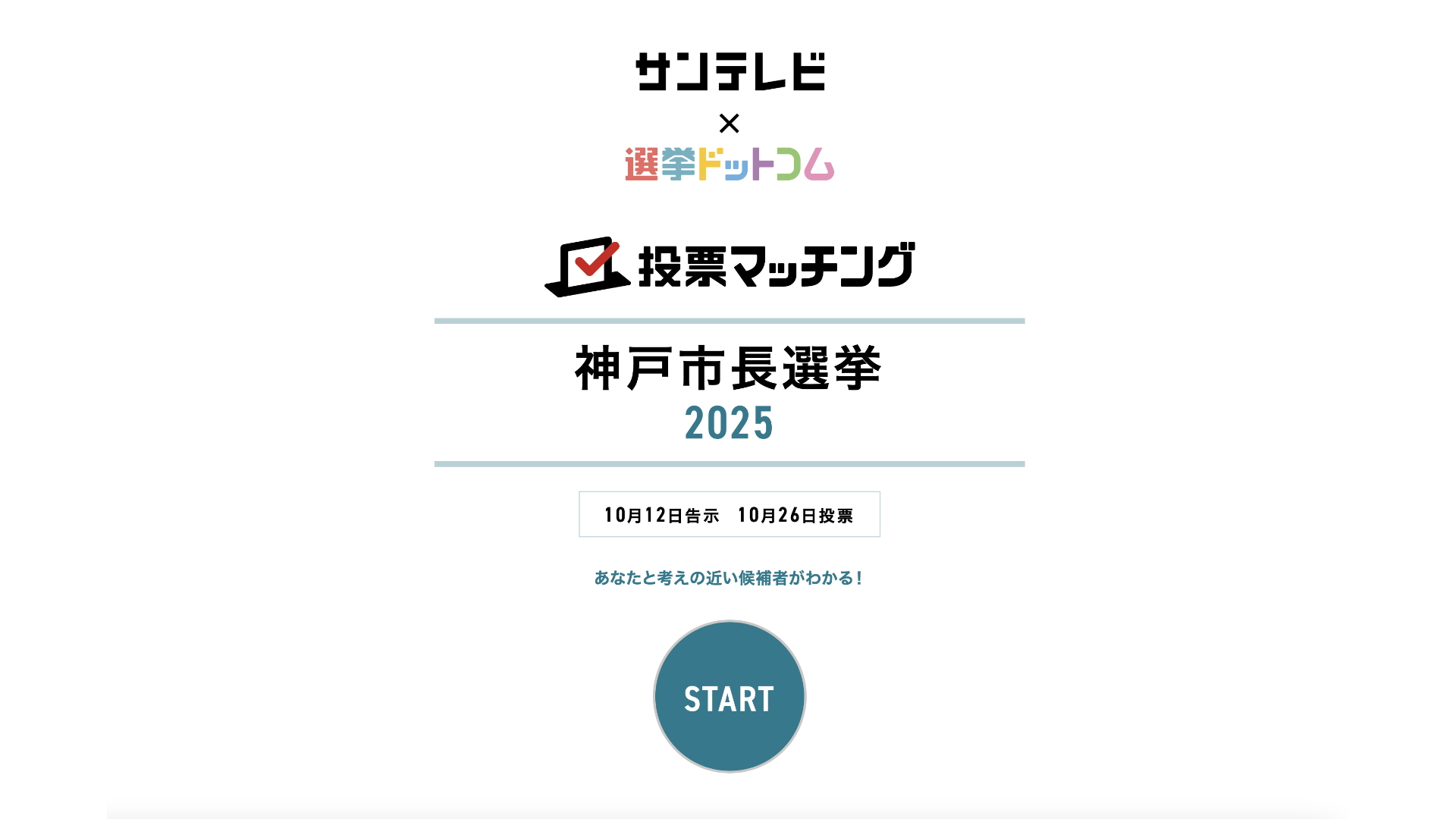 サンテレビは、「選挙ドットコム」と共同で神戸市長選の投票マッチングサイトを開設しています。