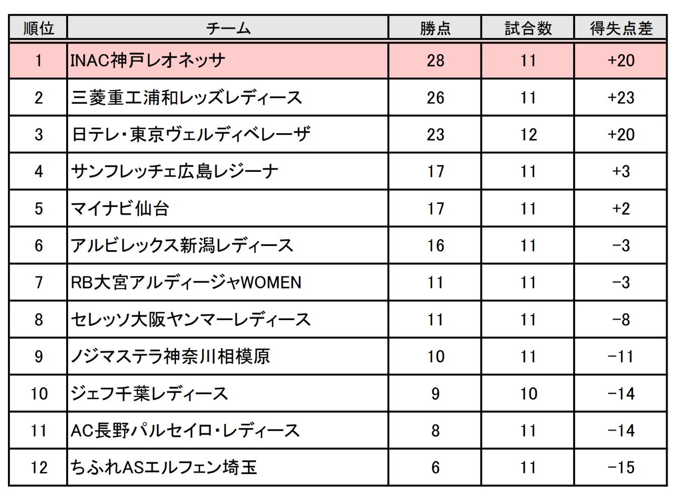 INACは前半11試合を終え9勝1分1敗、勝点「28」で首位を走っている。