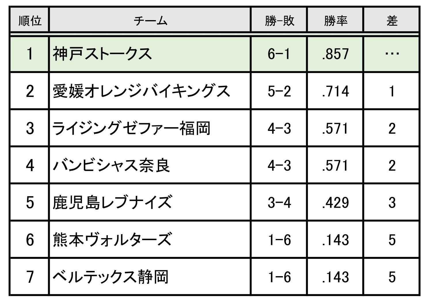 • B2西地区 順位表