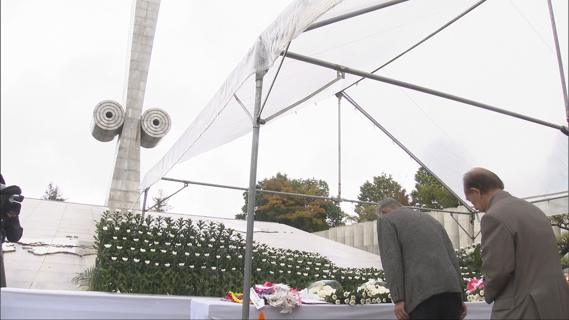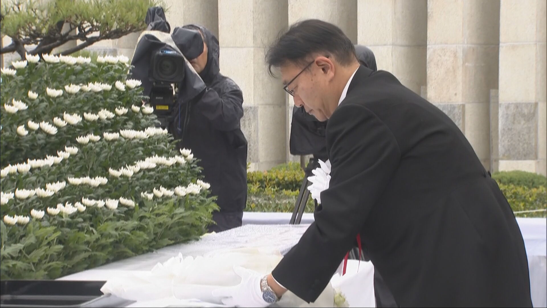 全国の空襲犠牲者を追悼 姫路で平和祈念式典 2025.10.2618:17 地域・まち 太平洋戦争の空襲による全国の犠牲者を追悼する式典が、姫路市で開かれました。 この式典は、慰霊塔のある姫路市の手柄山平和公園で毎年開かれていて、きょうは、空襲犠牲者の遺族らおよそ400人が参列しました。 アメリカ軍などによる空襲では、全国でおよそ51万人が亡くなったと推定されていて、姫路市では500人以上が犠牲となりました。 式典では、市立手柄小学校6年の津田夏凛さんが平和へのメッセージを読み上げました。 参列した人は、慰霊塔に花を手向けて、犠牲者の冥福を祈っていました。 #太平洋戦争 #姫路市 #平和祈念式典 記事のギャラリーを見る ニュース一覧へ戻る