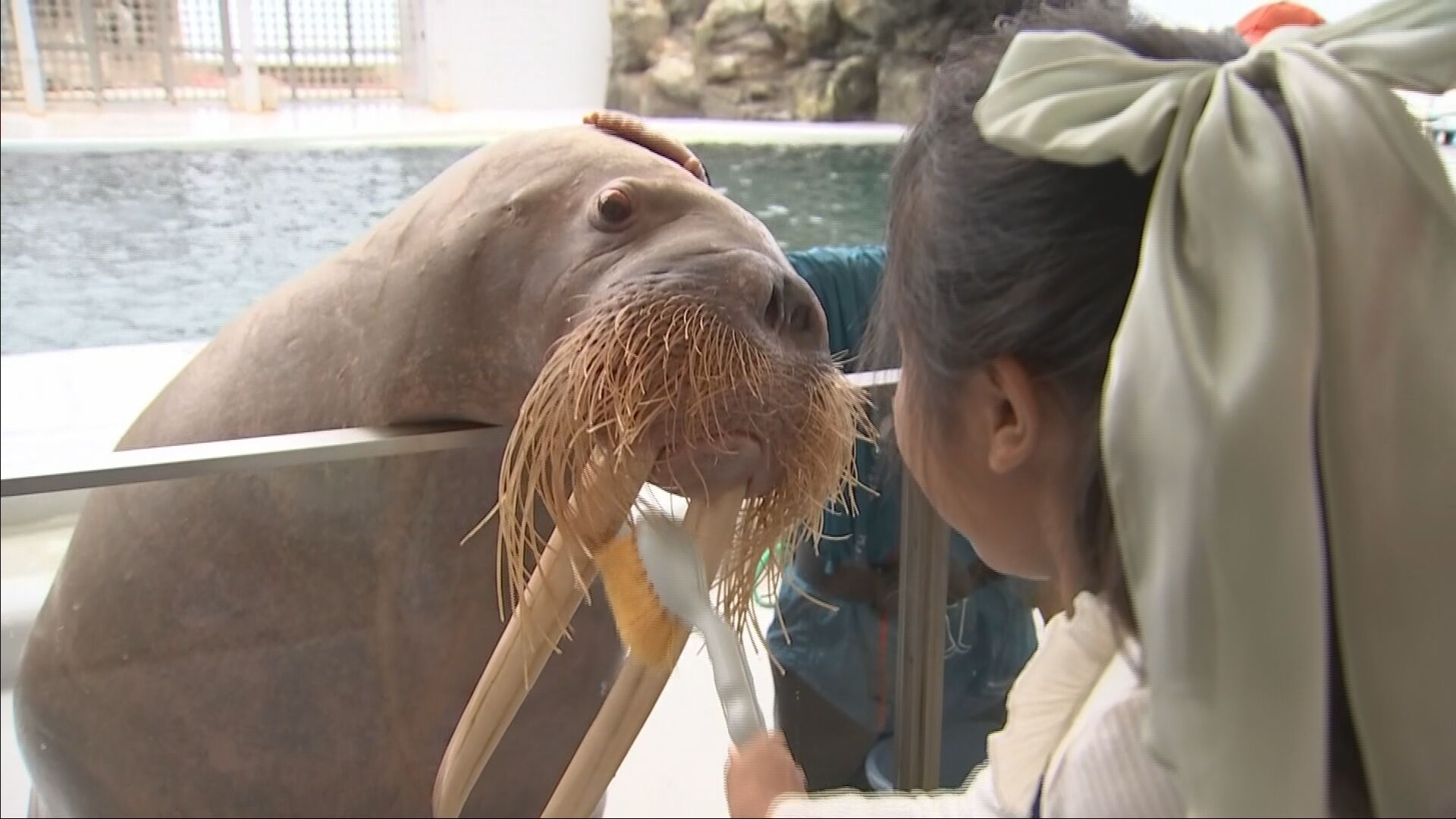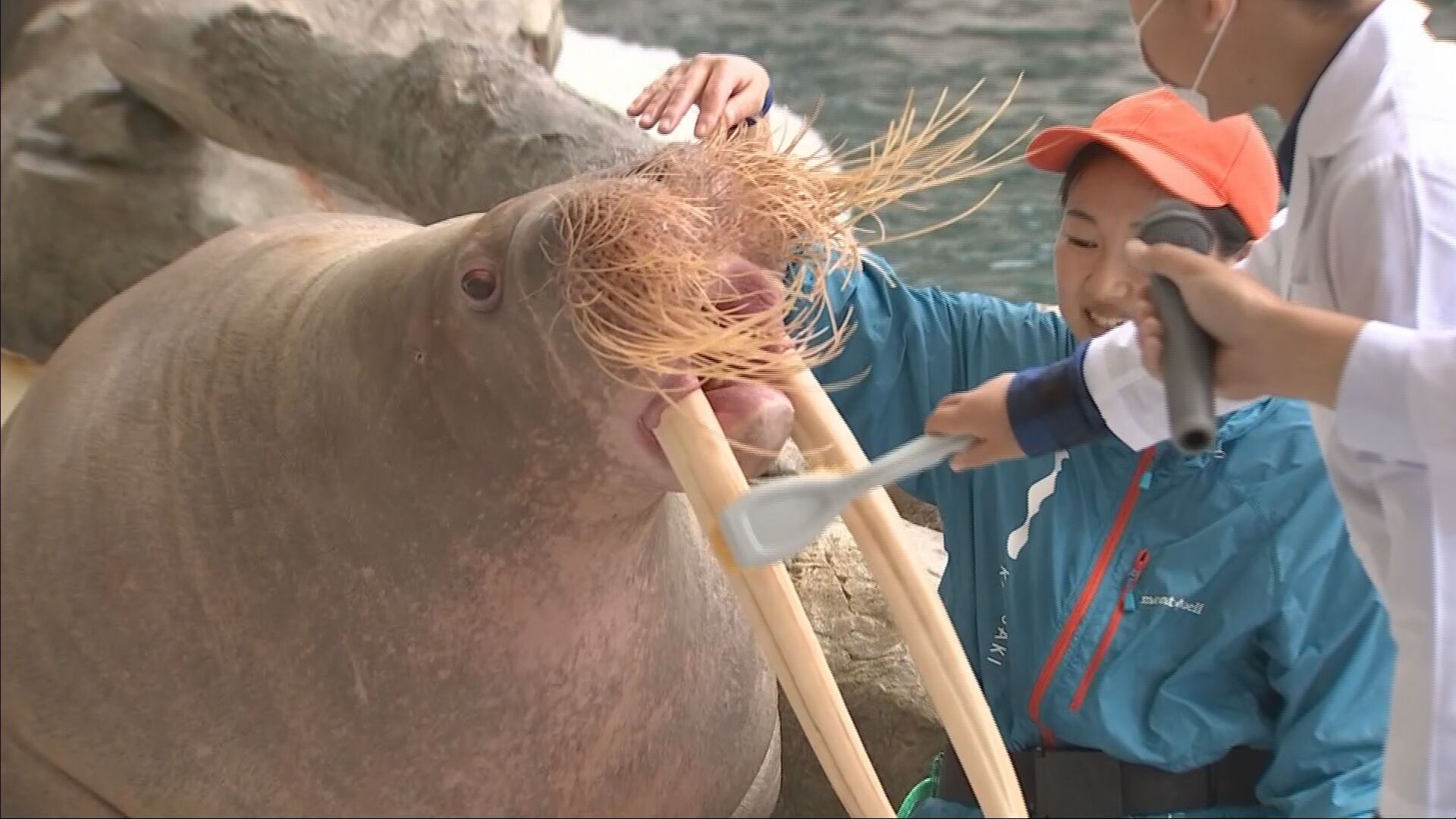 来月8日の「いい歯の日」を前に豊岡市の城崎マリンワールドでは、子どもたちがセイウチの歯磨きに挑戦しました。