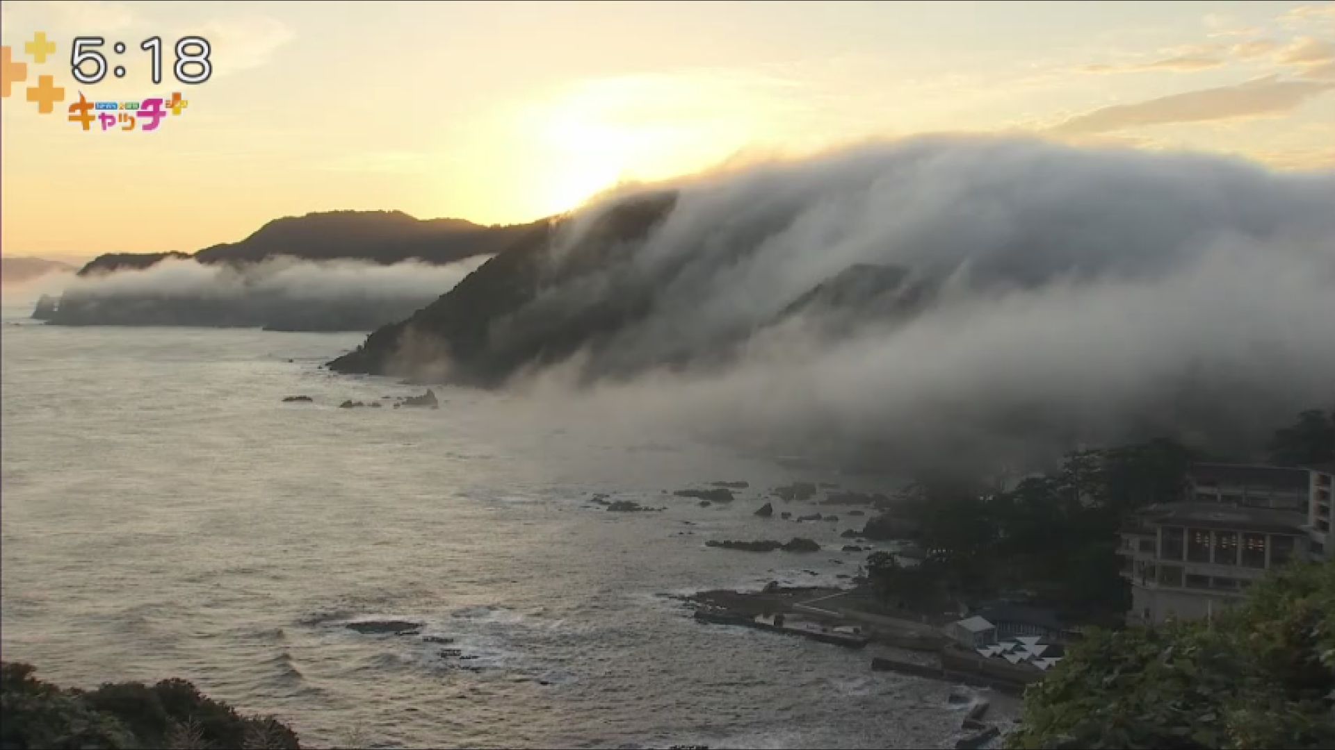 10月に入っても暑い日が多く、霧が海まで届かない日が続いていましたが、25日は気象条件が揃い、太陽の光に照らされた幻想的な光景が広がっていました。