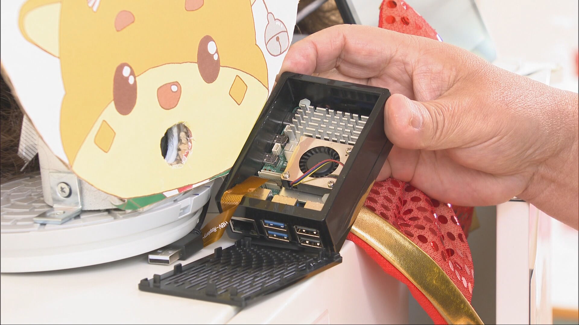 生徒がロボットの前に立つと、、フルネーム入りの気持ちのいいあいさつが返ってきます。その秘密は「ラズベリーパイ」と呼ばれる小型コンピュータ。