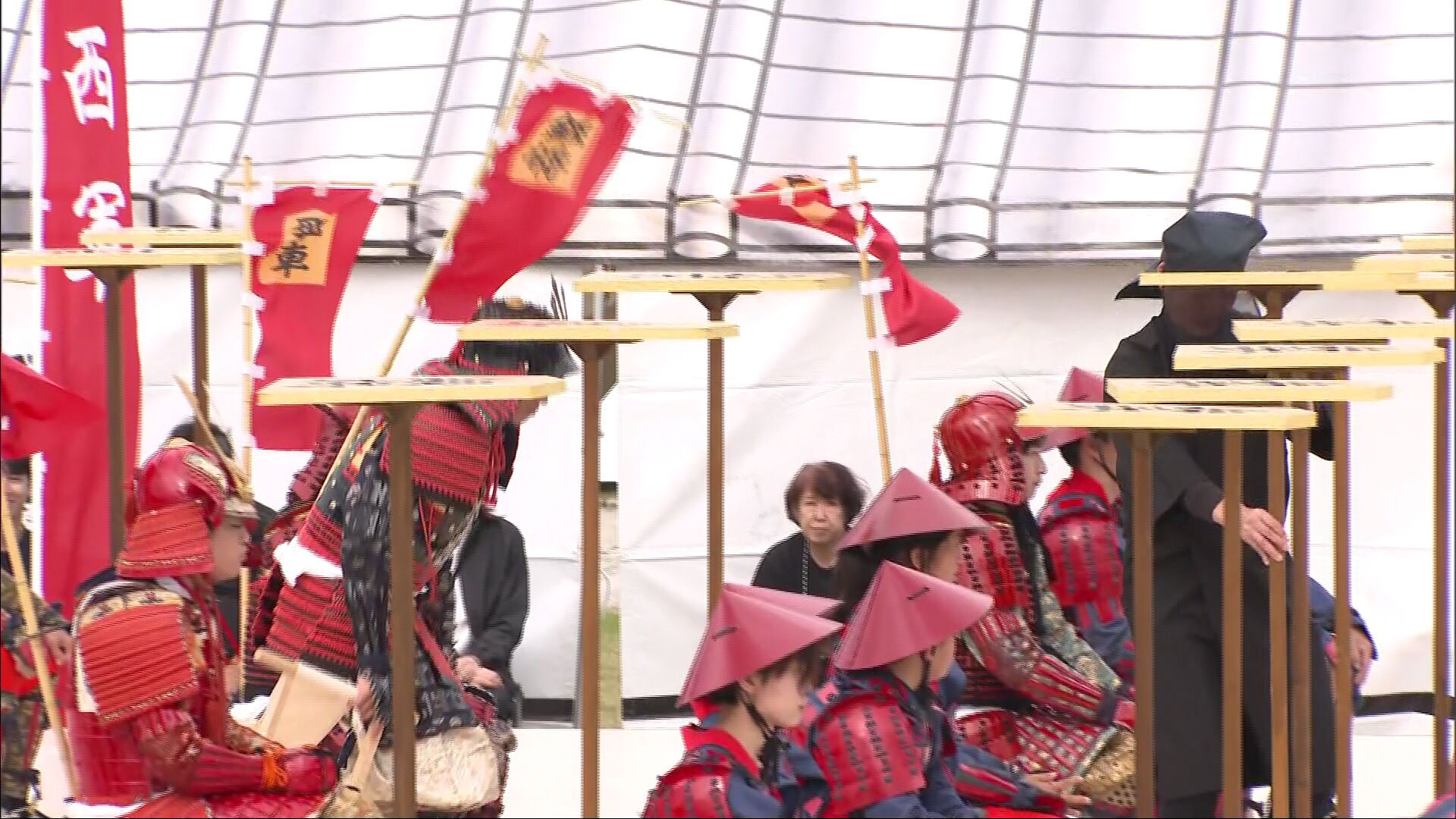 甲冑姿の人を駒に見立て、巨大な将棋盤でプロ棋士が対局する「人間将棋」が、姫路城で行われました。