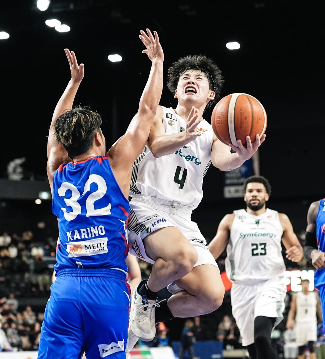 3Qにかけて寺園、道原、木村圭吾、アイザック・バッツ、笹倉怜寿、ヨーリ・チャイルズと次々にシュートを決め、連続17得点で一気に逆転した。
