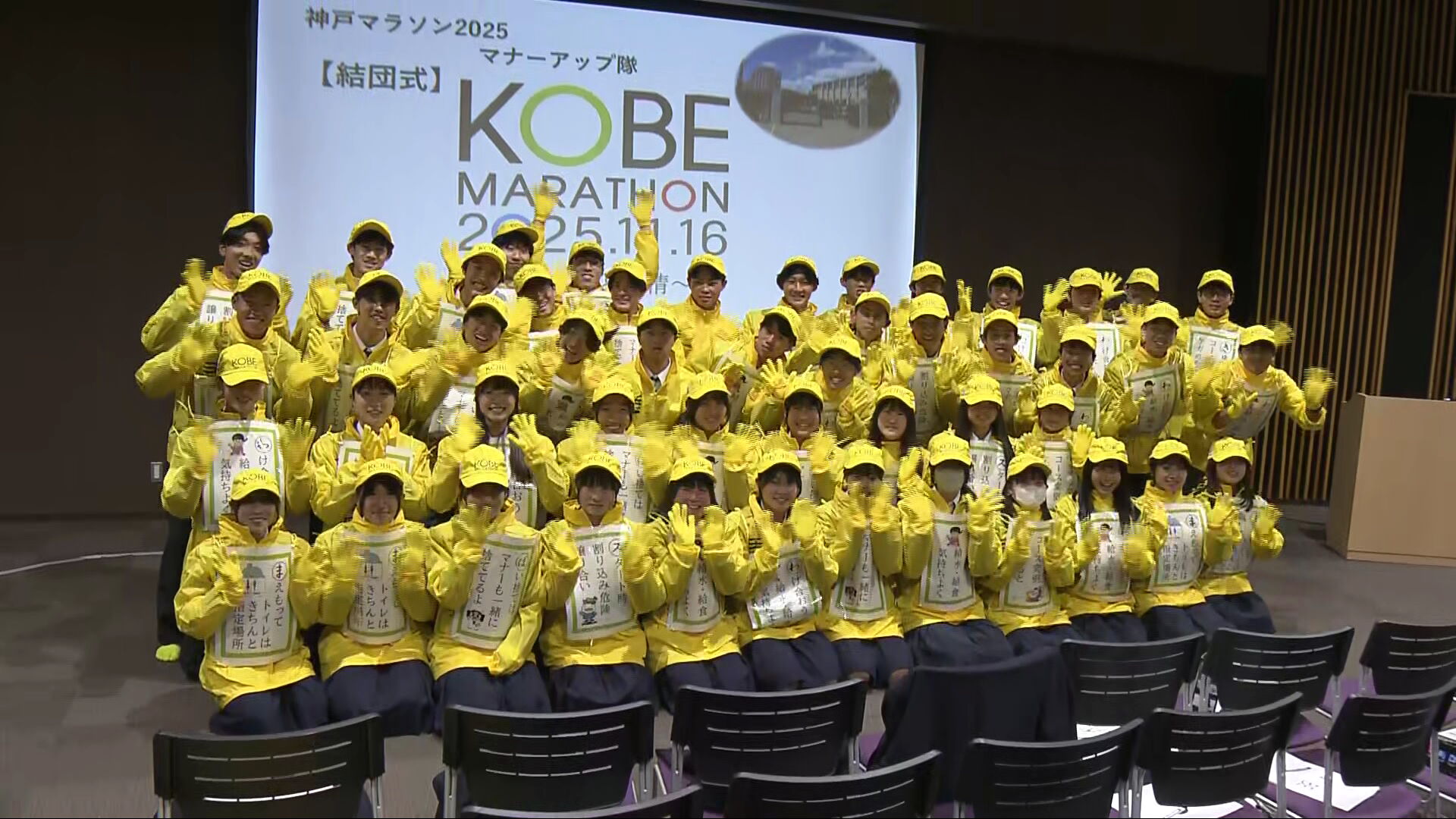 11月16日に開催される神戸マラソンを前に、参加ランナーにマナーの向上を呼び掛ける高校生ボランティアたちの結団式が開かれました。