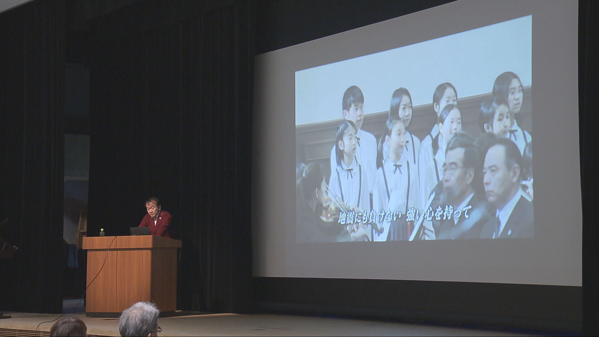 また震災当時、小学校の音楽教師で、作詞作曲した臼井真さんが災害への備えや震災の風化防止への思いの他、歌が生まれた経緯について講演。